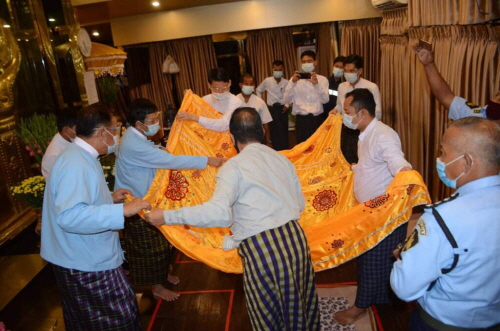 예복은 구루손, 구야함모니, 가섭, 석가모니 4개 불상과 타와구 부처(Padamya Myet Shin Buddha) 일명 소원 성취 불상에 바쳐졌습니다.