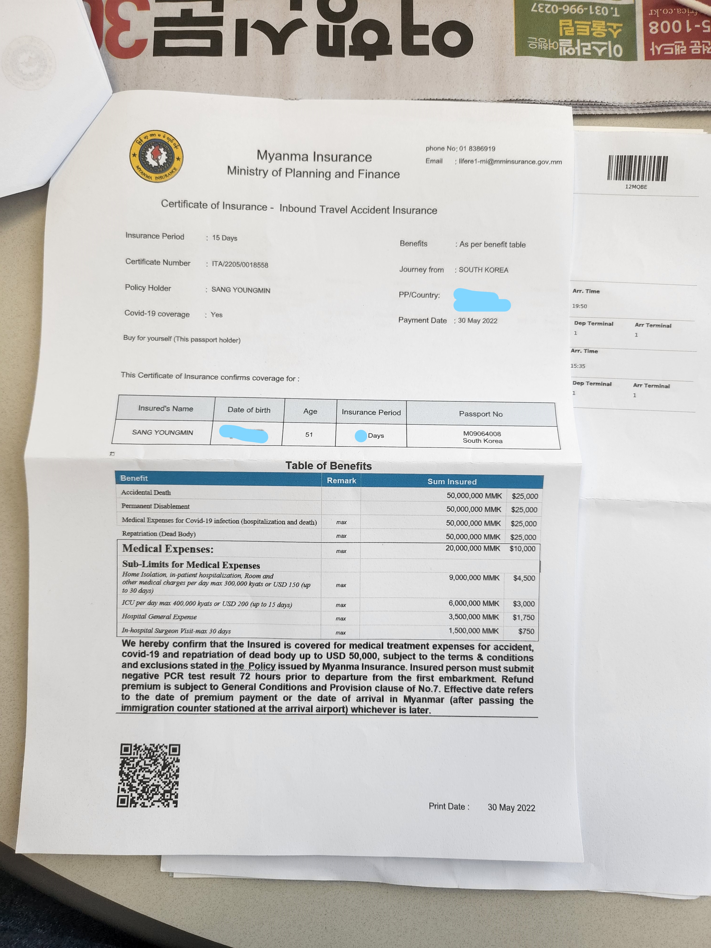 코로나 이후 미얀마 입국에 필요한 서류와 비용 빵트래블
