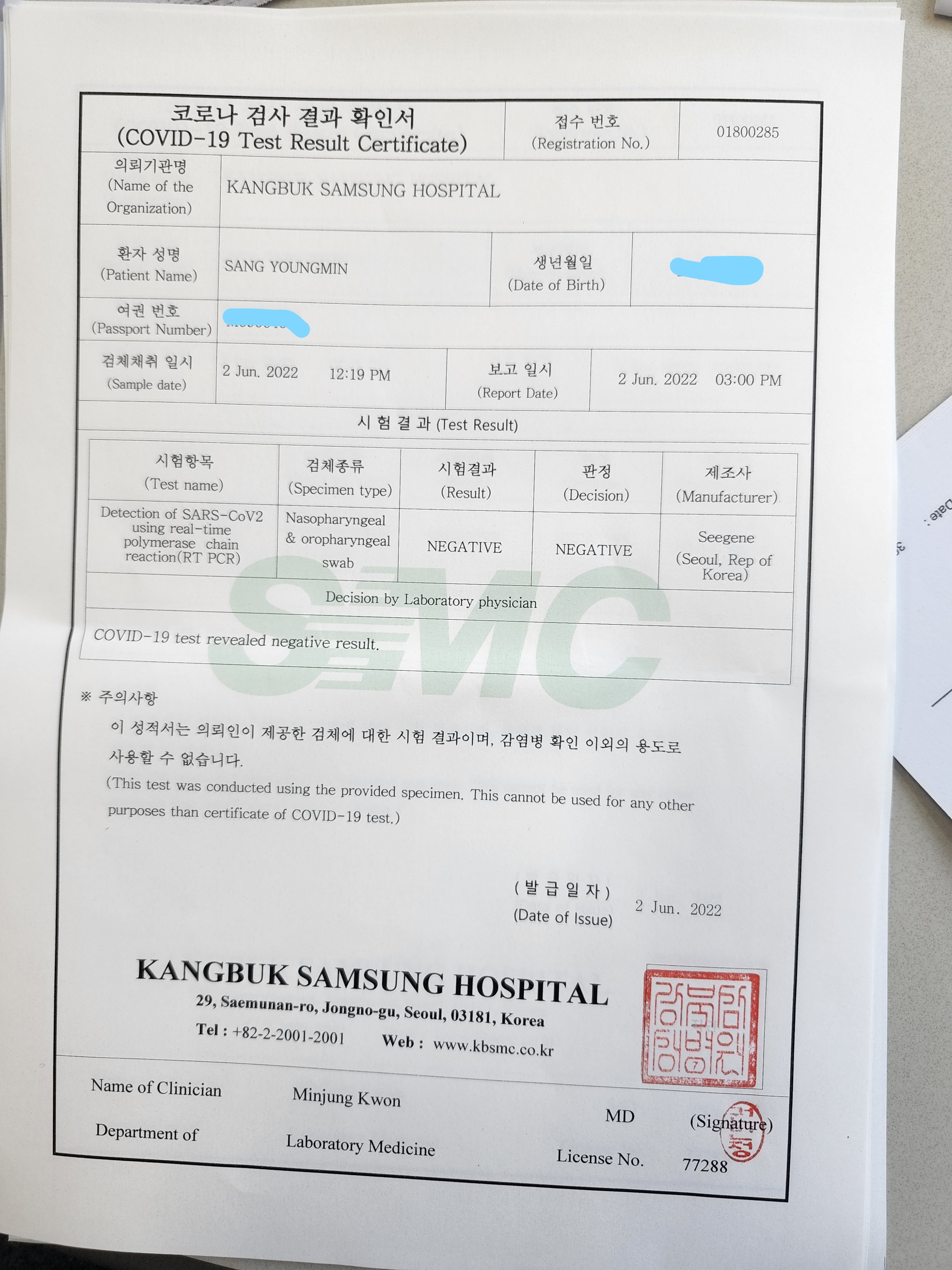 3. pcr 검사비용 : 검사95,000원+발급비20,000원