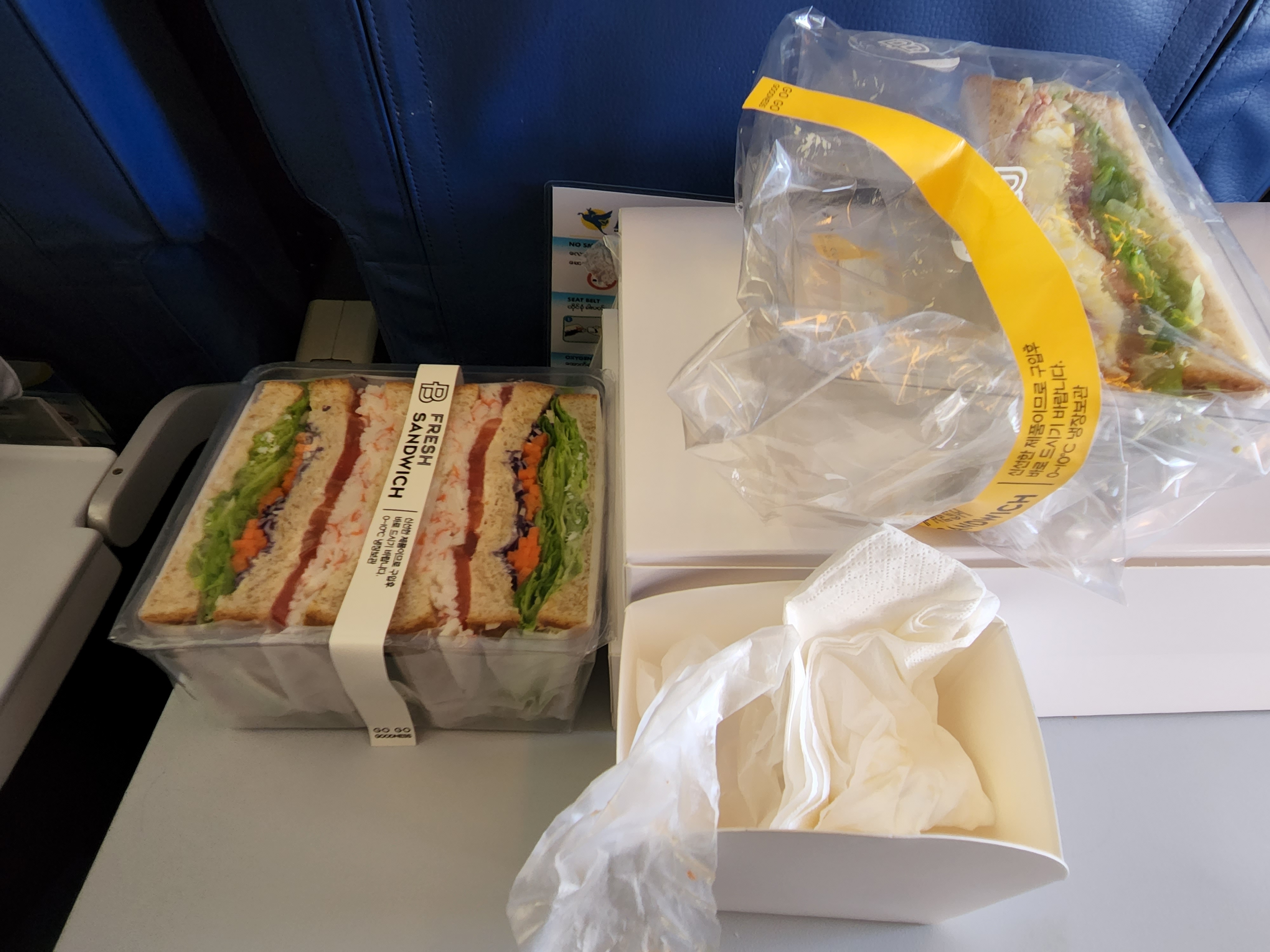 제법 비싼 항공이라 그런건지 오랜만에 기내식이라 그런건지 맛나게 먹었지만 공항에서 사온 샌드위치로 식사를 마무리 했다.