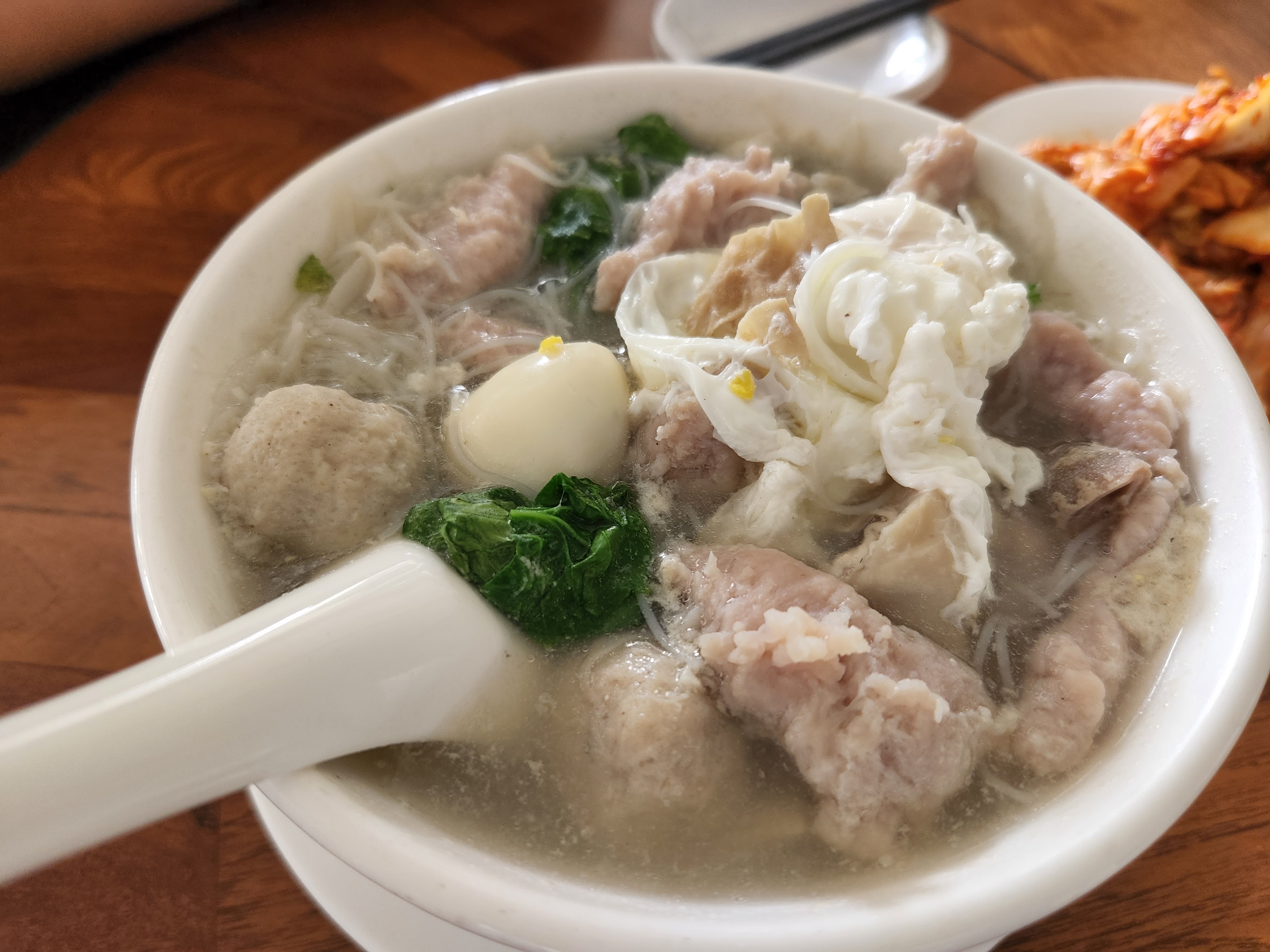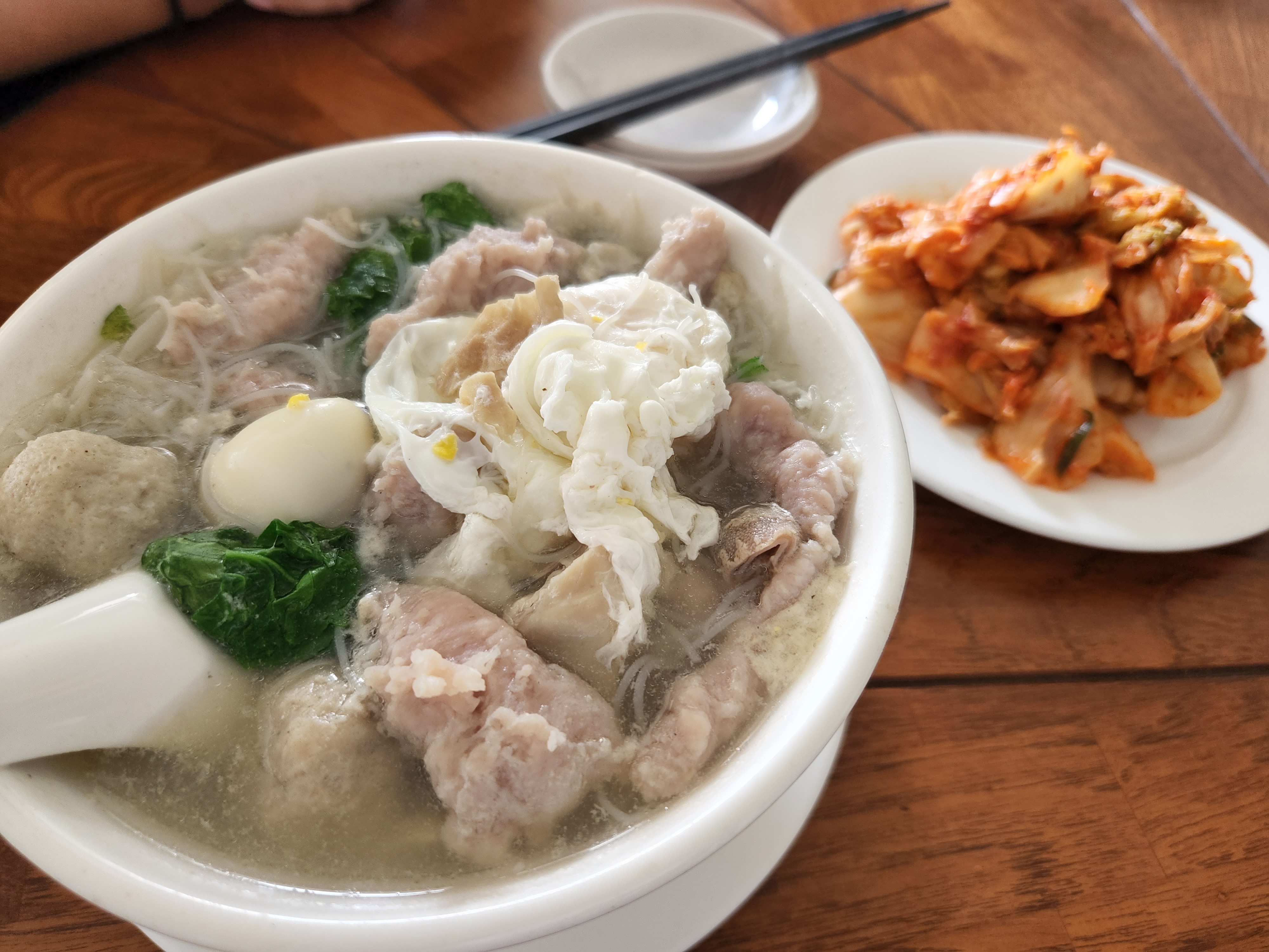 돼지고기,닭고기,생선 등을 우려낸 맑은 국물 사용