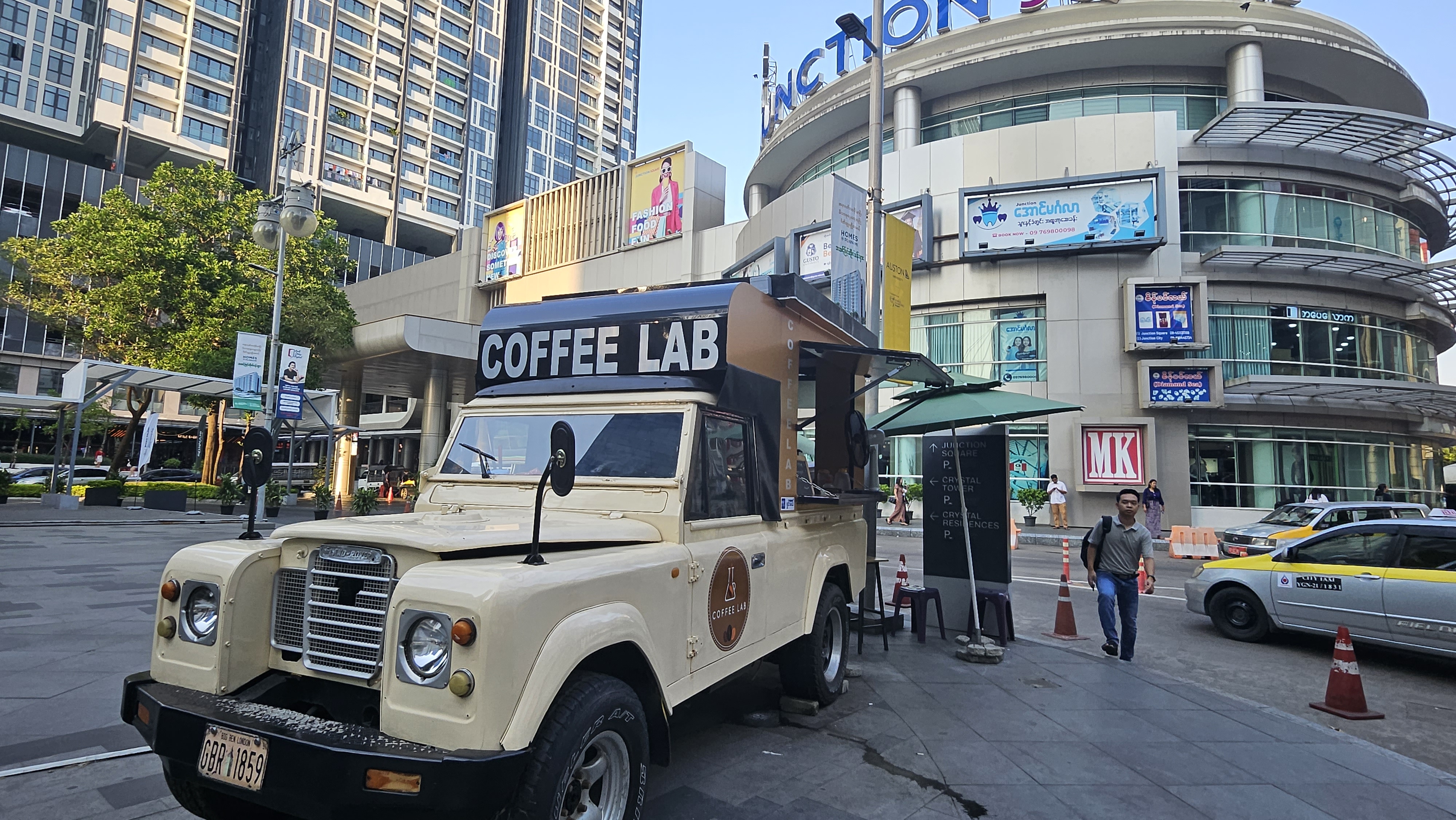 양곤 정션스퀘어에서 커피 차량 빵트래블