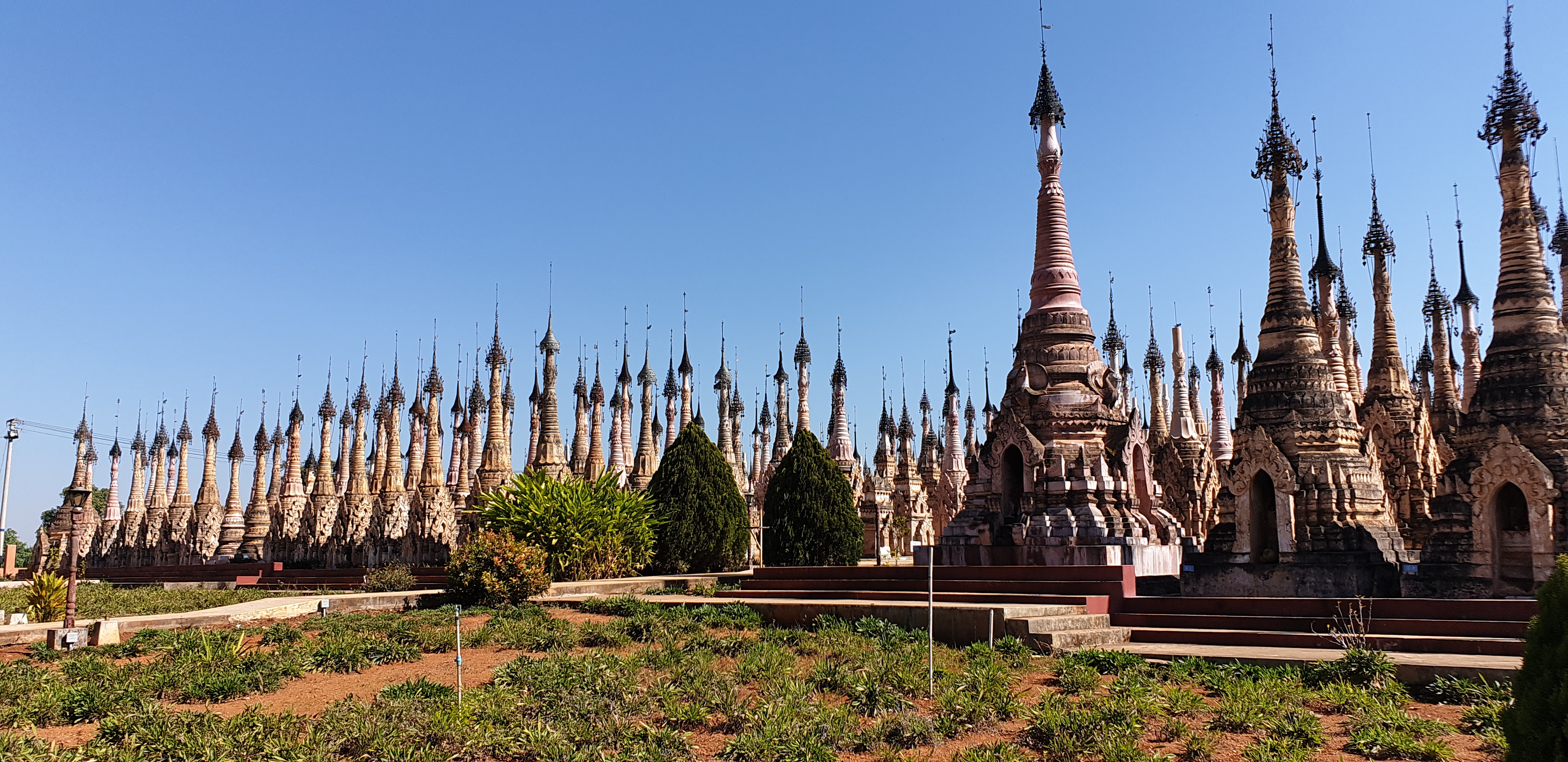 까꾸 - 황량한 벌판에 느닷없이 나타난 거대한 스투파 그룹이 그림처럼 눈 앞에 펼쳐졌다. 빽빽하게 세워진 파고다 숲 같아 멋있다 라는 생각이 들 정도이다.