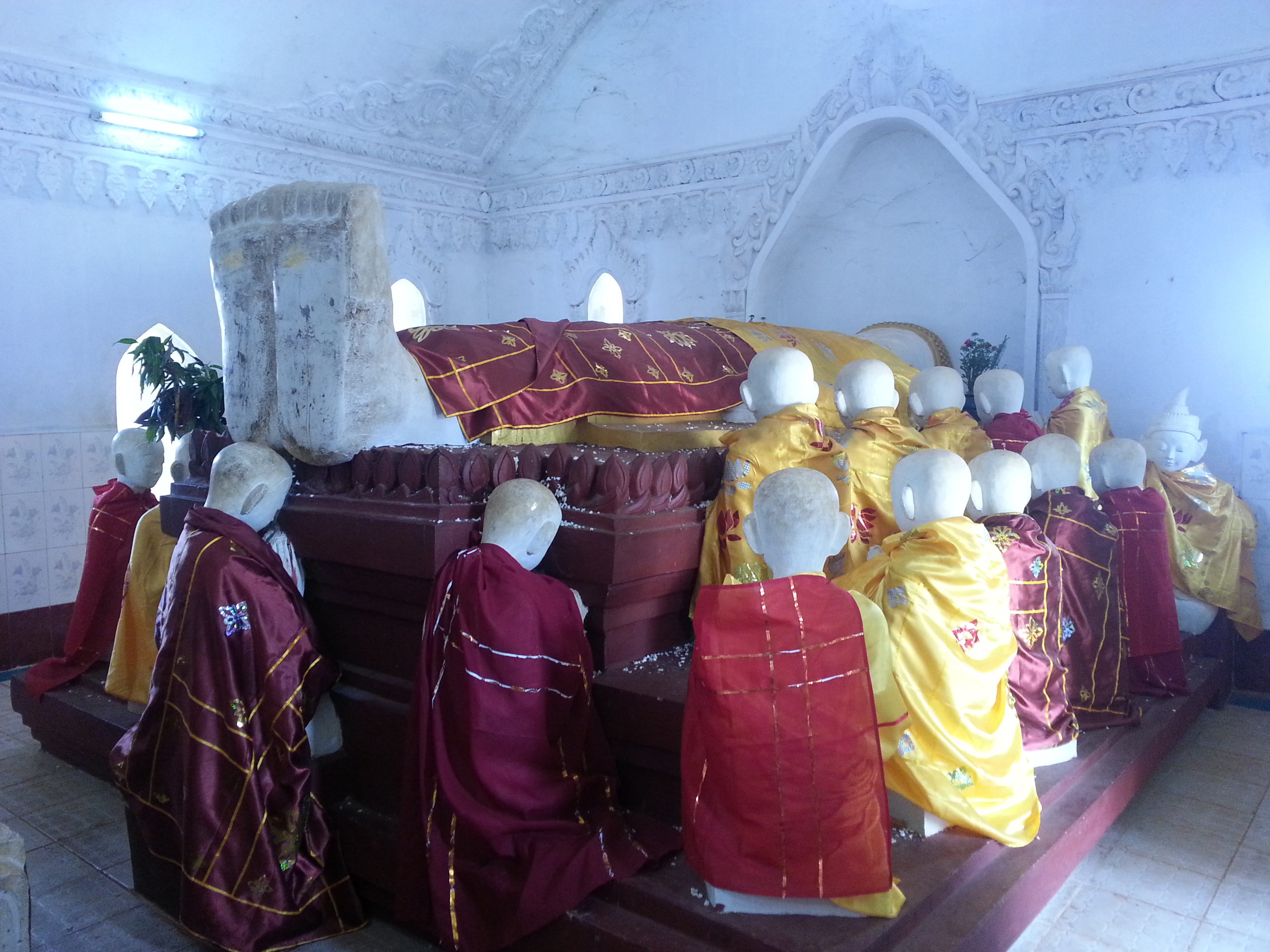 수많은 탑이 가득한 이곳에 특이하게 황금으로 된 돼지 상이 눈에 뛴다. 빠오족 가이드의 이야기에 의하면, 오래전 이 지역에 살던 한 노부부가 숲에서 밝은 빛이 새어나오는 것을 발견했다고 한다. 그 빛은 땅에서 새어나오고 있었다. 노부부가 땅을 파헤치기에는 역부족이었는데 마침 어디선가 멧돼지 한마리가 나타나 코를 이용해 대신 따을 파주었는데 깊은 땅속에는 금과 은, 불상이 가득 있었다고 한다. 그자리에 흙을 메꾸고 작은 탑을 세운 것이 까꾸의 유래라고 한다.