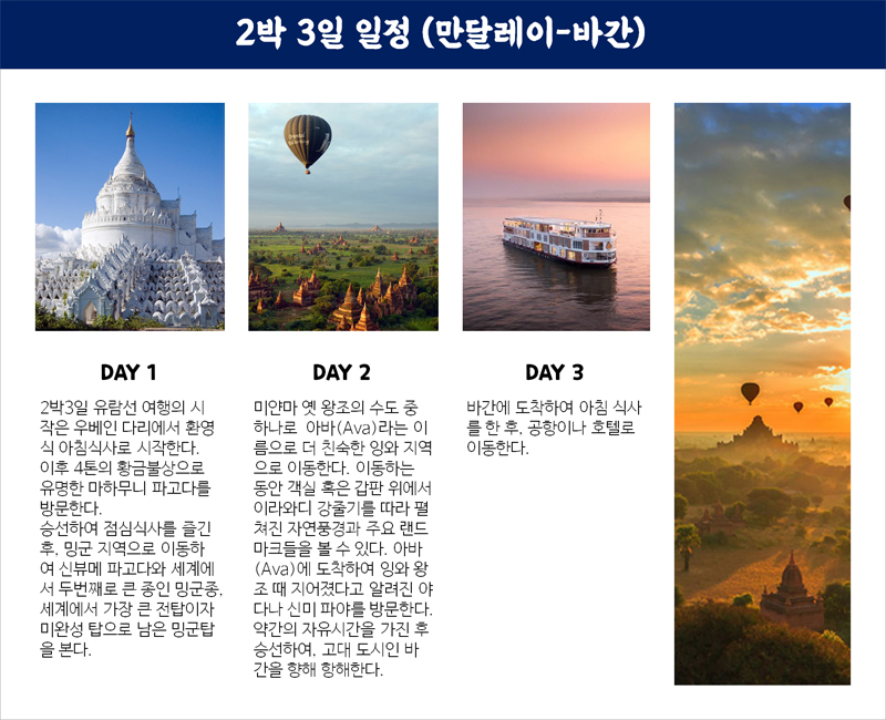 만달레이-바간 유람선 투어의 조인트 상품입니다.