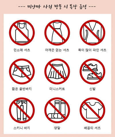 사원 복장 규정 참고 부탁드립니다. 사원에 입장 불가한 복장으로 오셔서 현장에서 입장 거부될 경우 책임지지 않습니다.