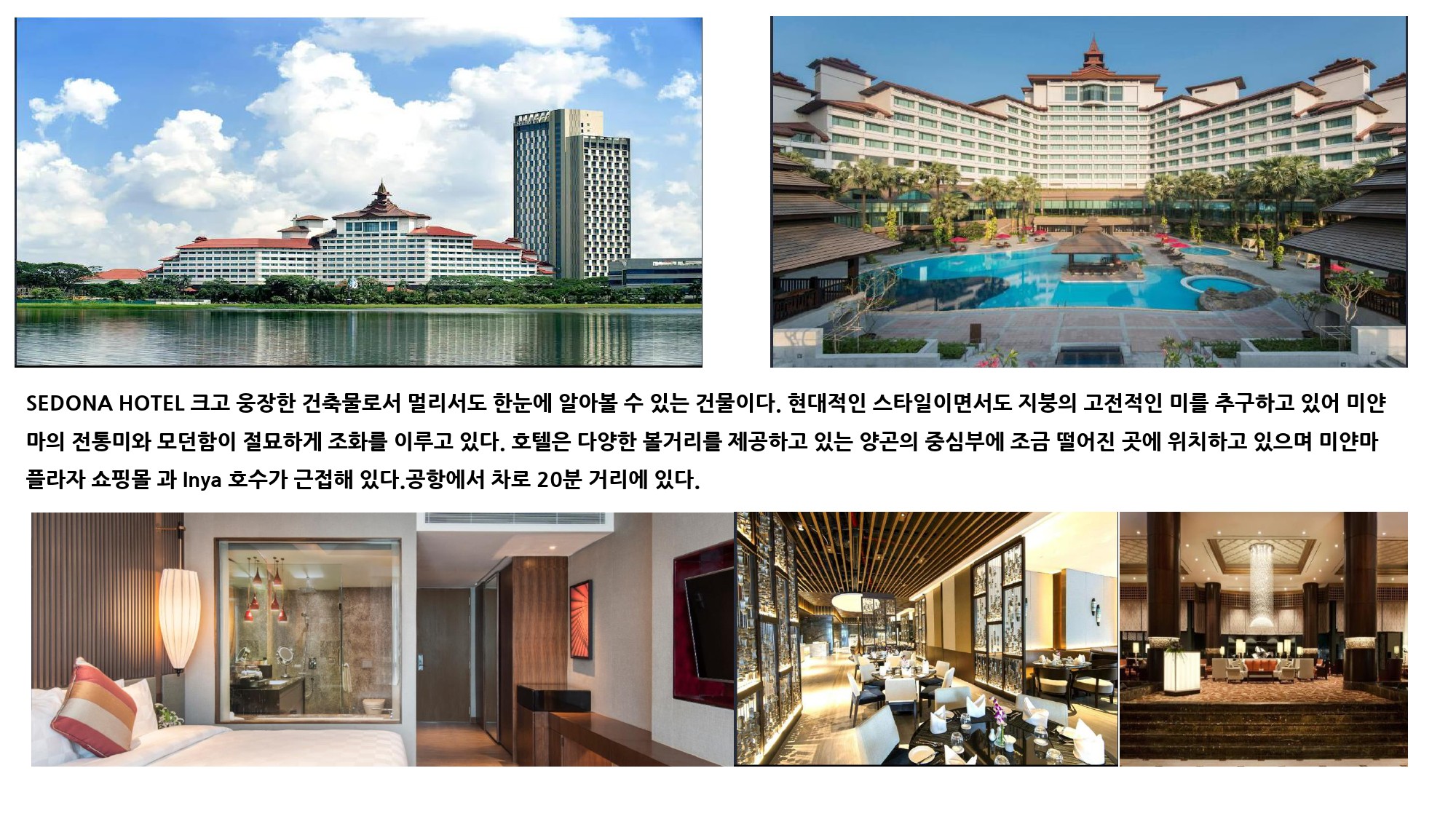 -미얀마는 아직 호텔시설이 미비한 편입니다. 따라서 현지사정상 부득이한 경우 다른 동급의 호텔로 변동될 수 있으며, 연박이 어려울 수 있습니다.