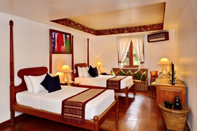넓은 객실 내부는 티크 나무로 만들어진 가구들로 고풍스럽고 따뜻하게 꾸며져 있습니다.