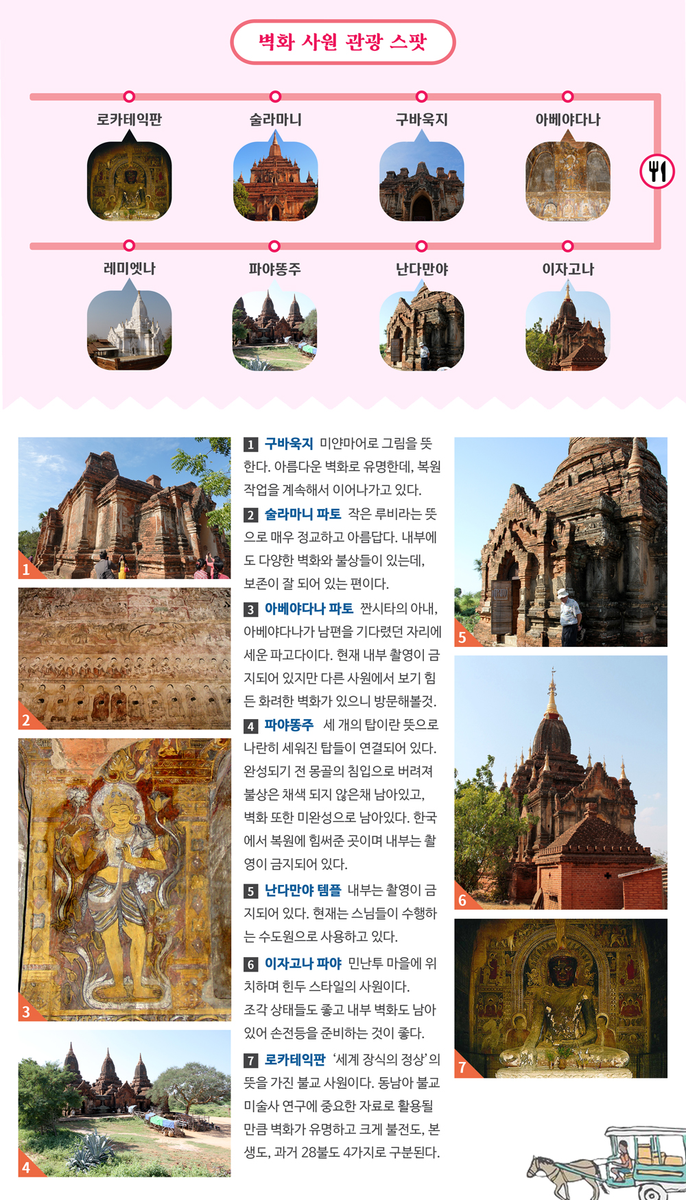 힌두 스타일의 이자고나 파야, 정교하고 아름다운 벽화가 비교적 잘 보존된 술라마니 등을