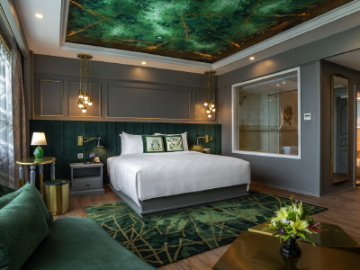 객실마다 파란색 혹은 초록색 등으로 포인트를 주었으며 편안하고 깔끔하게 인테리어 되어 있습니다.