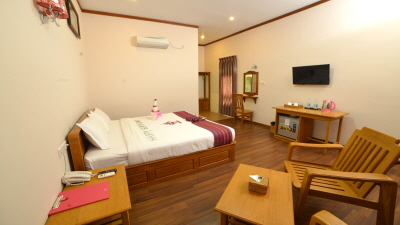 방갈로 타입의 전 객실은 조용하며 군더더기 없는 가구 배치로 편안하게 머물 수 있습니다.