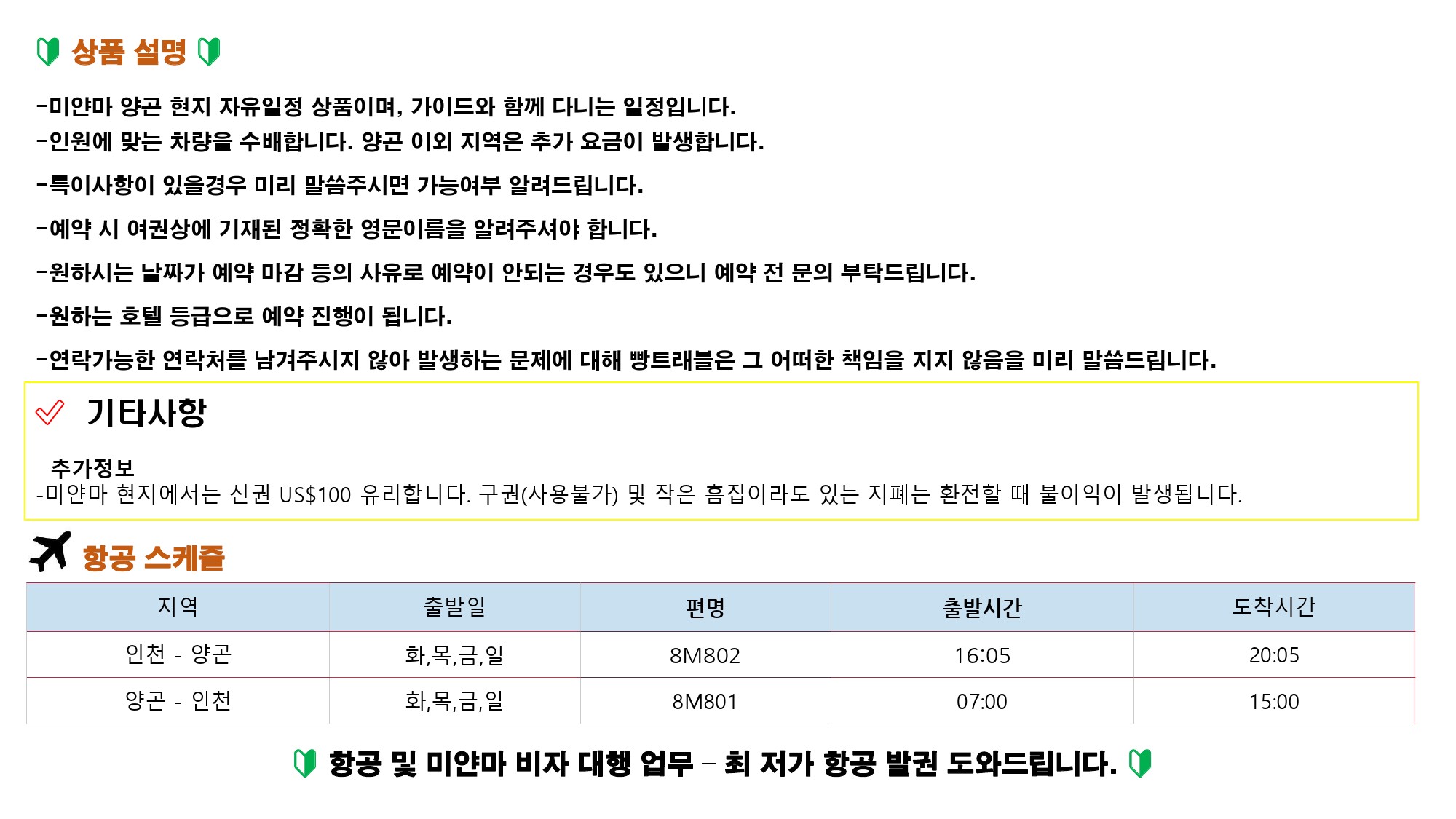 · 양곤자유투어 또는 비지니스 손님이 원하는 기간대로 예약진행가능 - 국제선,호텔,차량,가이드,미얀마비자 진행 가능합니다.