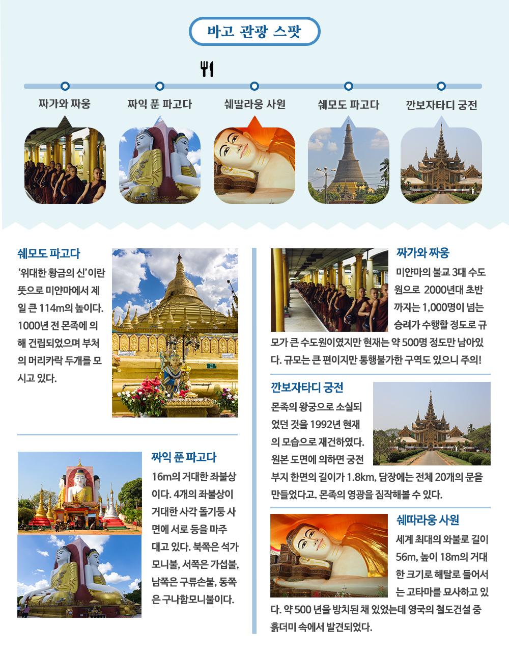 미얀마의 역대 왕조 중 하나인 몬 왕조의 주요 유적지가 남아있는 바고 투어로,