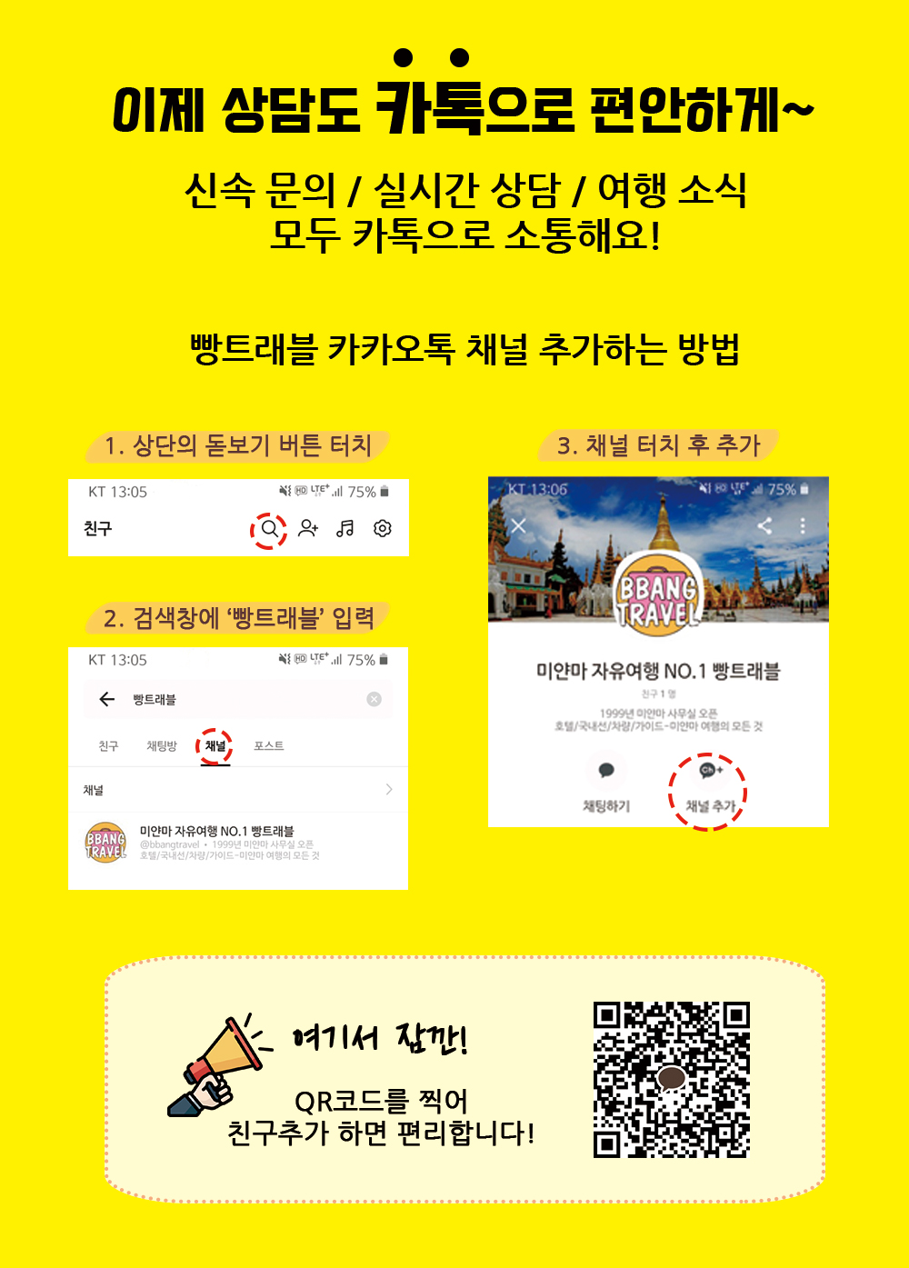 양곤본사 No(385), 5Floor, Waryarlatter 3th street, kabaaye myangone Township, Yangon Myanmar Tel : 95-1 667170 | H/P: 95-943048476 한국지사 서울특별시 종로구 우정국로39 1401호 대표번호 : 02-365-7748 | 팩스 : 02-365-7748 이메일 : bbtravel2000@gmail.com COPYRIGHT (C) 2018 BBANGTRAVEL. ALL RIGHTS RESERVED. By BUSANWEB